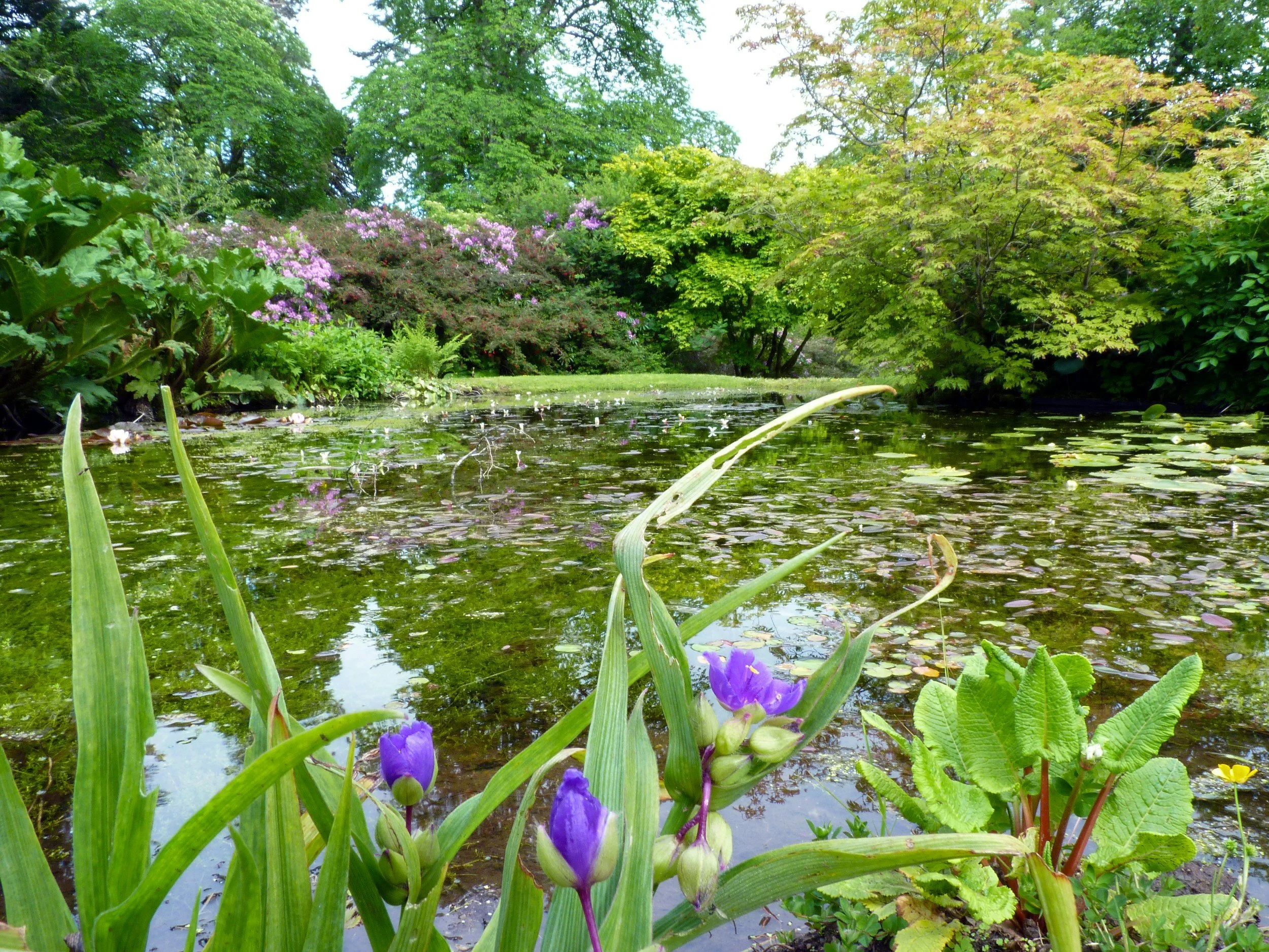Enjoying vibrant aquatic blooms and lush greenery all around